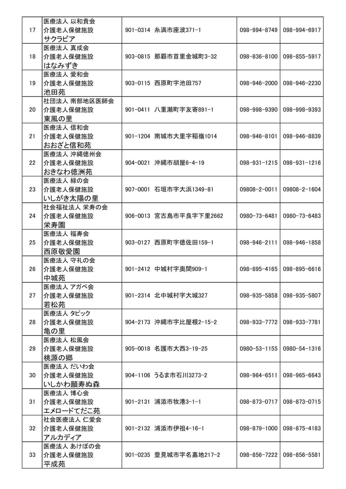 TOP > 会員施設 会員施設 会員施設 TOP 沖老健(おきろうけん) ごあいさつ 介護老人保健施設とは 老健類型とは 協議会の概要 会員施設 災害時等支援体制 電子ツールによる情報共有 介護老人保健施設大会 広報誌「老健うちなぁ」 LINK(リンク) 会員専用(老健大会) 会員専用A(沖老健WEB) 会員専用B(変更届) 会員専用C(その他)